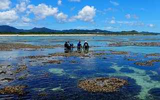 海の中へ潜ると、アオサンゴやユビエダハマサンゴ、ミドリイシなどのサンゴ、そしてベラやスズメダイなどの魚など、美しいサンゴが広がる海だからこそさまざまな生物が集まる多様性豊かな海が広がっていました。