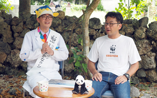 2017年7月21日、石垣島にあるWWFサンゴ礁保護研究センター「しらほサンゴ村」は、さかなクンを1日センター長としてお迎えしました。さかなクンは、北半球で最大級ともいわれるアオサンゴ群集の広がる白保の海をシュノーケリングで視察。その後、センター長の鈴木倫太郎と対談し、今後のサンゴ礁生態系保全に向けた想いについて、意見を交換しました。