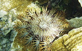 サンゴを食す大型のヒトデである「オニヒトデ」。もともとサンゴ礁の海に生息する生き物ですが、生態系のバランスが崩れ大発生をするとサンゴは大きなダメージを受けます。